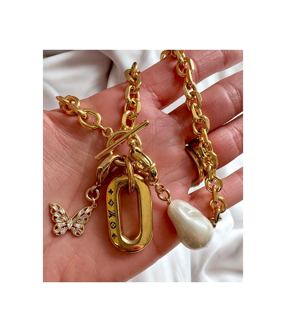Repurposed Louis Vuitton LV Monogram Link w/Removable Butterfly & Pearl Necklace